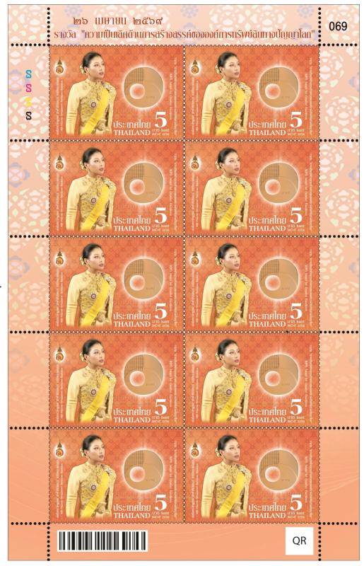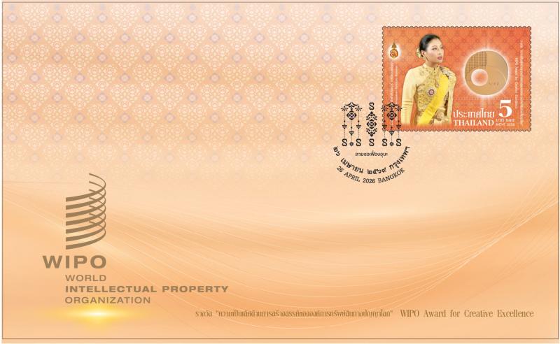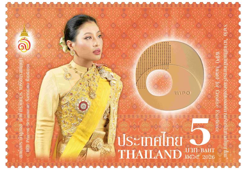แสตมป์ที่ระลึกเนื่องในโอกาสที่องค์การทรัพย์สินทางปัญญาโลกทูลเกล้าฯ ถวายรางวัล “ความเป็นเลิศด้านการสร้างสรรค์ขององค์การทรัพย์สินทางปัญญาโลก : WIPO Award for Creative Excellence” แด่สมเด็จพระเจ้าลูกเธอ เจ้าฟ้าสิริวัณณวรี นารีรัตนราชกัญญา ภาพบนแสตมป์ปรากฏพระฉายาลักษณ์ในฉลองพระองค์ชุดไทย และภาพรางวัลจาก WIPO พร้อมด้วยตราพระนามาภิไธยย่อ ส.ร. โดยมีพื้นหลังเป็นลายผ้าพระราชทาน “ผ้าลายสิริราชพัสตราภรณ์” ที่ทรงออกแบบไว้เนื่องในโอกาสที่ทรงได้รับการถวายปริญญาศิลปกรรมศาสตร์ดุษฎีบัณฑิตกิติมศักดิ์ สาขาวิชาศิลปะการออกแบบพัสตราภรณ์ จากมหาวิทยาลัยธรรมศาสตร์