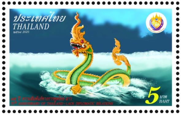 ไทยและลาวมีความผูกพันใกล้ชิดมาตั้งแต่อดีต ทั้งในเรื่องภาษา วรรณกรรม ศาสนา วัฒนธรรม และประเพณี โดยเฉพาะความเชื่อเรื่อง “พญานาค” ที่ทั้งสองประเทศต่างเคารพบูชา ด้วยเชื่อว่าเป็นผู้ปกป้องพุทธศาสนา เป็นสัญลักษณ์ของความอุดมสมบูรณ์ ภาพแสตมป์ไทยเป็นภาพพญาศรีสัตตนาคราช ในอิริยาบถพ่นน้ำและคายดอกบัว สื่อถึงการเป็นผู้สร้างและพิทักษ์แม่น้ำโขง พร้อมทั้งยื่นมิตรภาพให้แก่ประเทศเพื่อนบ้าน ออกแบบโดย นายธเนศ พลไชยวงศ์ ภาพวาดแสตมป์ลาวเป็นภาพพญานาคในตระ***ลวิรูปักษ์ เชื่อว่าดลบันดาลโชคลาภ ความสำเร็จ และความสุขแก่ผู้ที่ศรัทธา ออกแบบโดย Mr.Vongsavanh Damlongsouk