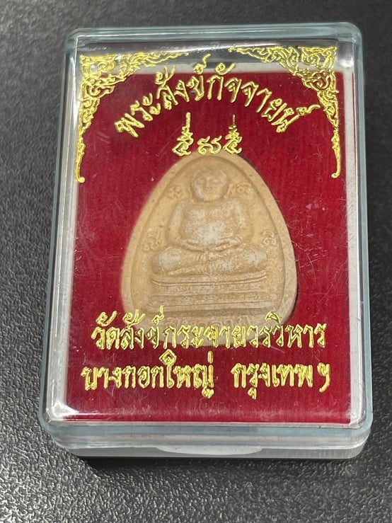 บรรจุในกรอบพลาสติกใสพร้อมพื้นหลังสีแดง